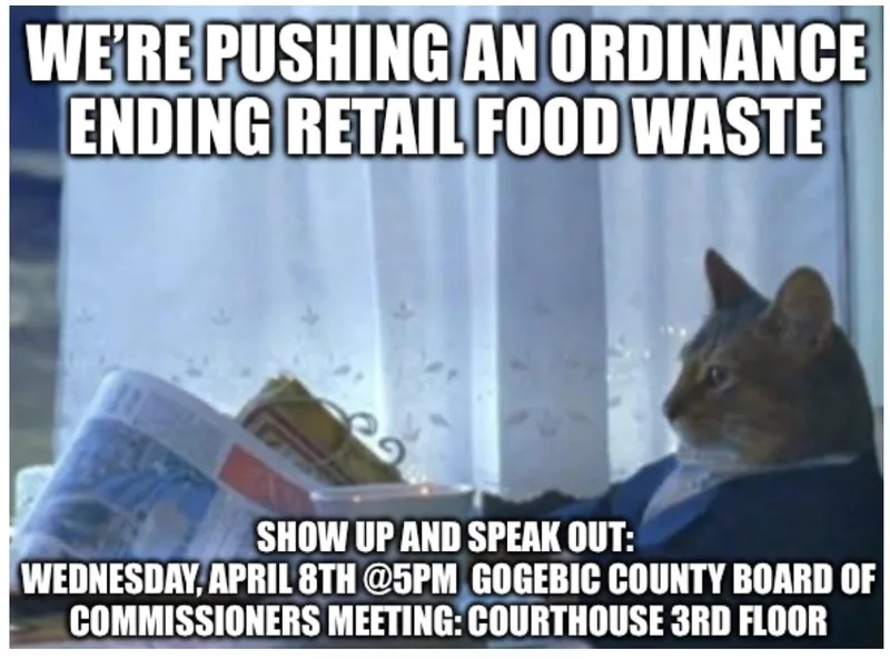 The ordinance won’t add any financial or bureaucratic burden on businesses or the county. The only difference for businesses is that they will set aside salvageable goods (instead of destroy them) and the volunteer task force will pick them up, and sort them for redistribution or compost. If you are interested in free compost, farm animal feed, or volunteering to reclaim goods from businesses, please contact us!